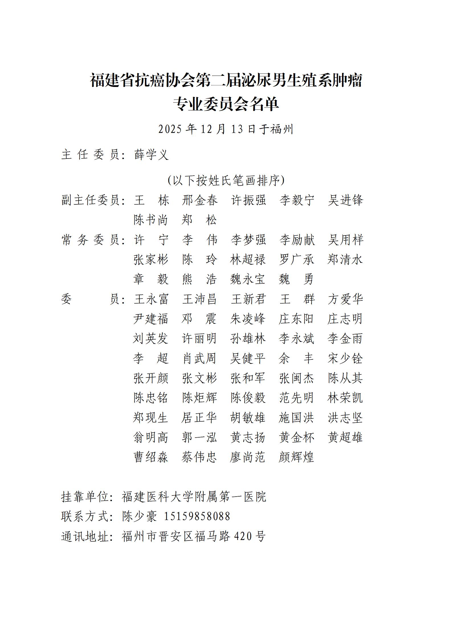 第二届泌尿男生殖肿瘤专业委员会