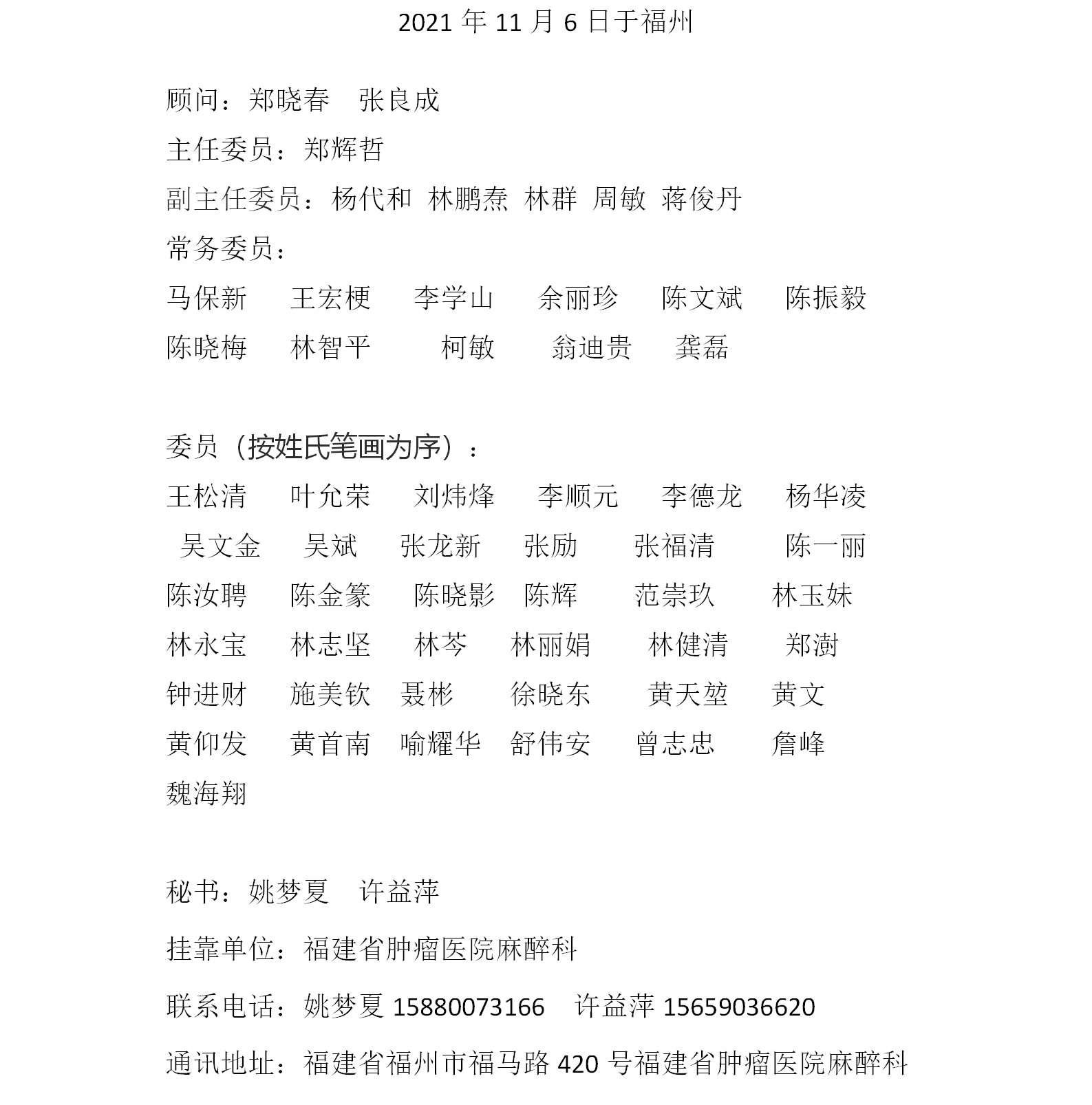 第一届肿瘤麻醉与镇痛专业委员会